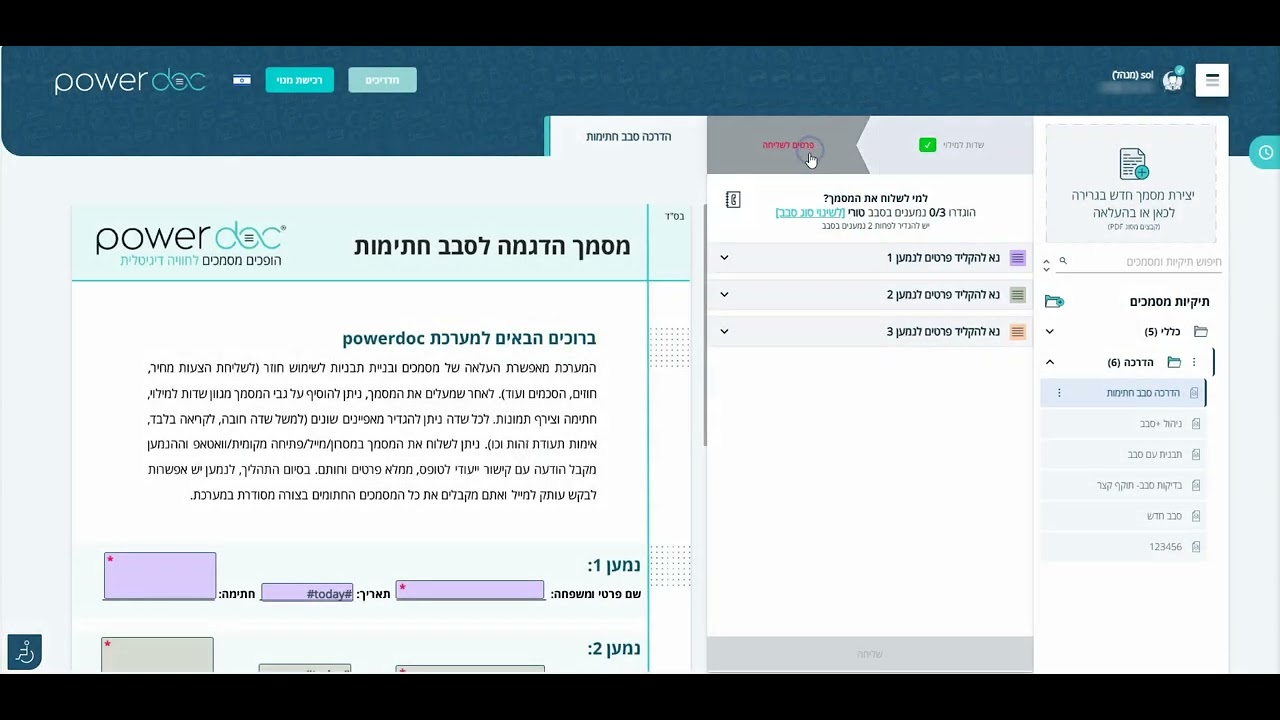 תיאור פיצ'ר: הוספת קבוצה של אנשי קשר לרשימת נמענים ולשליחה מסמך בסבב חתימות.