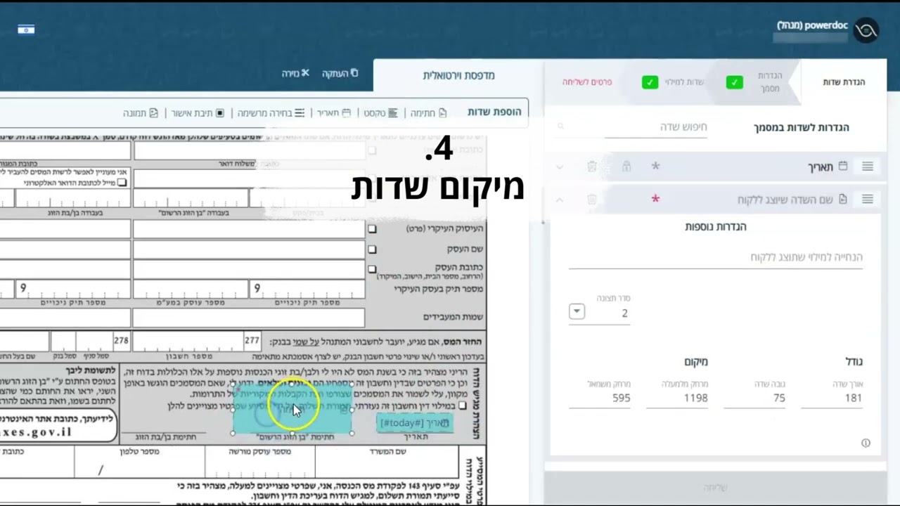 4. המסמך יפתח בדפדפן וניתן להוסיף שדות, פרטי לקוח ולשלוח.