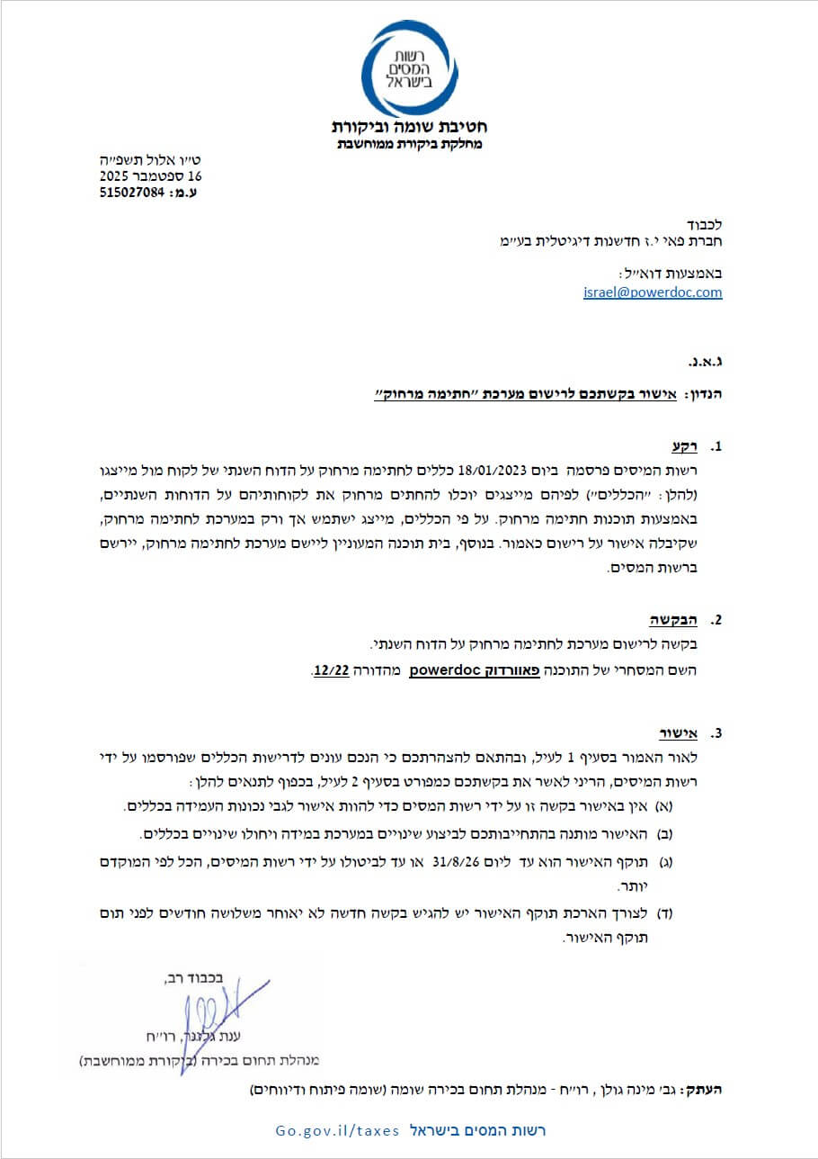 אישור עמידה בכללי מס הכנסה להחתמה אונליין