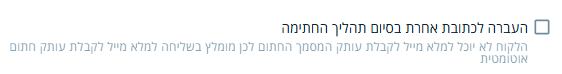 - מסמנים את צ’קבוקס "העברה לכתובת אחרת בסיום תהליך החתימה".