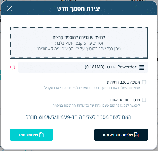 במידה ומדובר בשליחת מסמך למספר נמענים, יש לסמן "תמיכה בסבב" ולהגדיר את המסמך כסבב חתימות.